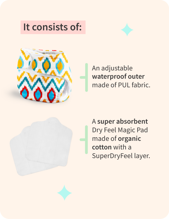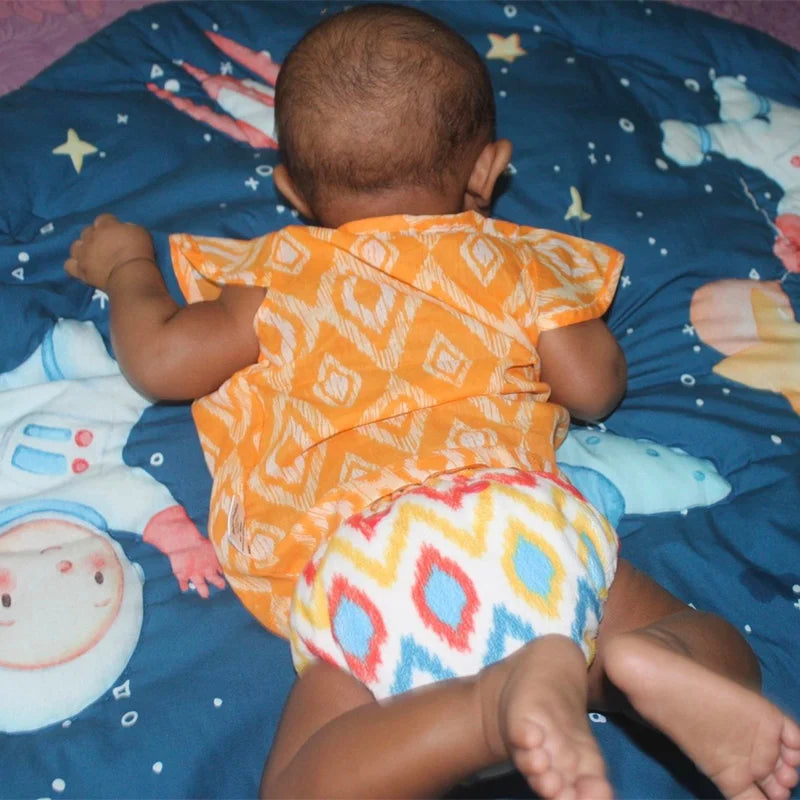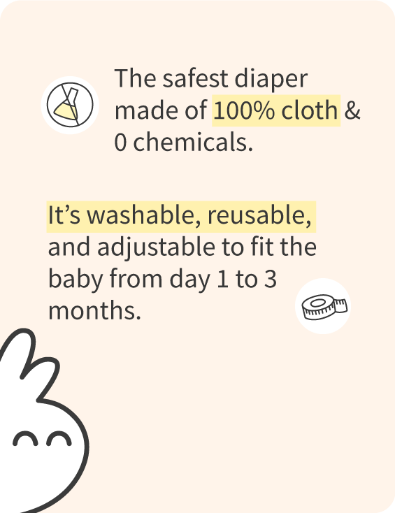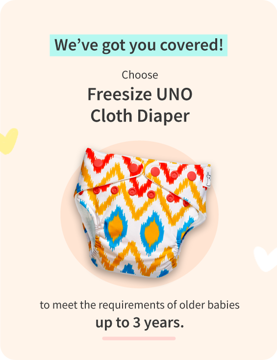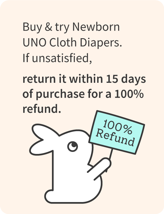 Since Newborn UNO cotton diapers are made of cloth, it is reusable and washable 300+ times. Once your baby outgrows the Newborn UNO cloth diapers, you can switch to Freesize UNO cloth diapers.