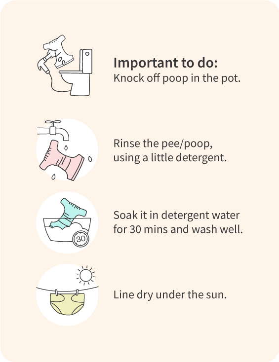 STEP1: Rinse off pee/poop if any, using a little detergent