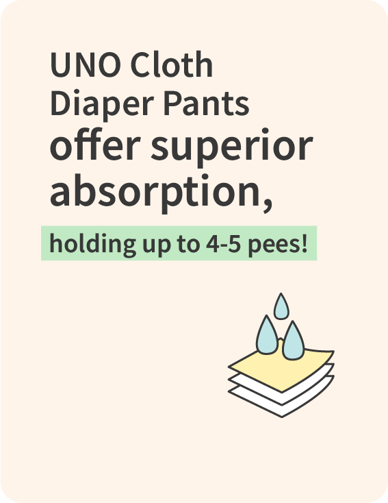 NOTE: Use UNO Cloth Diaper Pants for your baby’s regular diapering needs. Use Padded Underwear™ for potty training, to prevent messes from accidental pees as your child transitions from diapers to using the toilet.