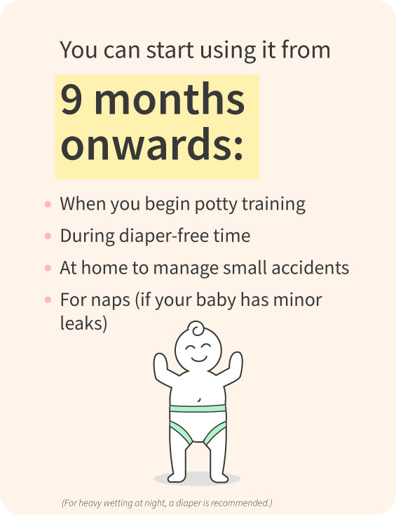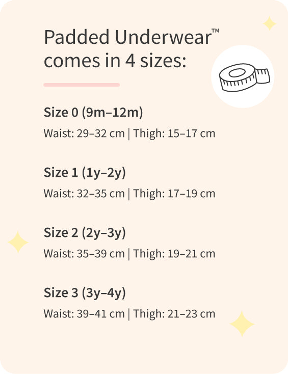 You can start using our padded underwear for toddlers and babies once they show signs of readiness for potty training, usually around 18–24 months. But please note that SuperBottoms offers a wide range of Padded Underwear sizes for children from 9 months to 4 years.