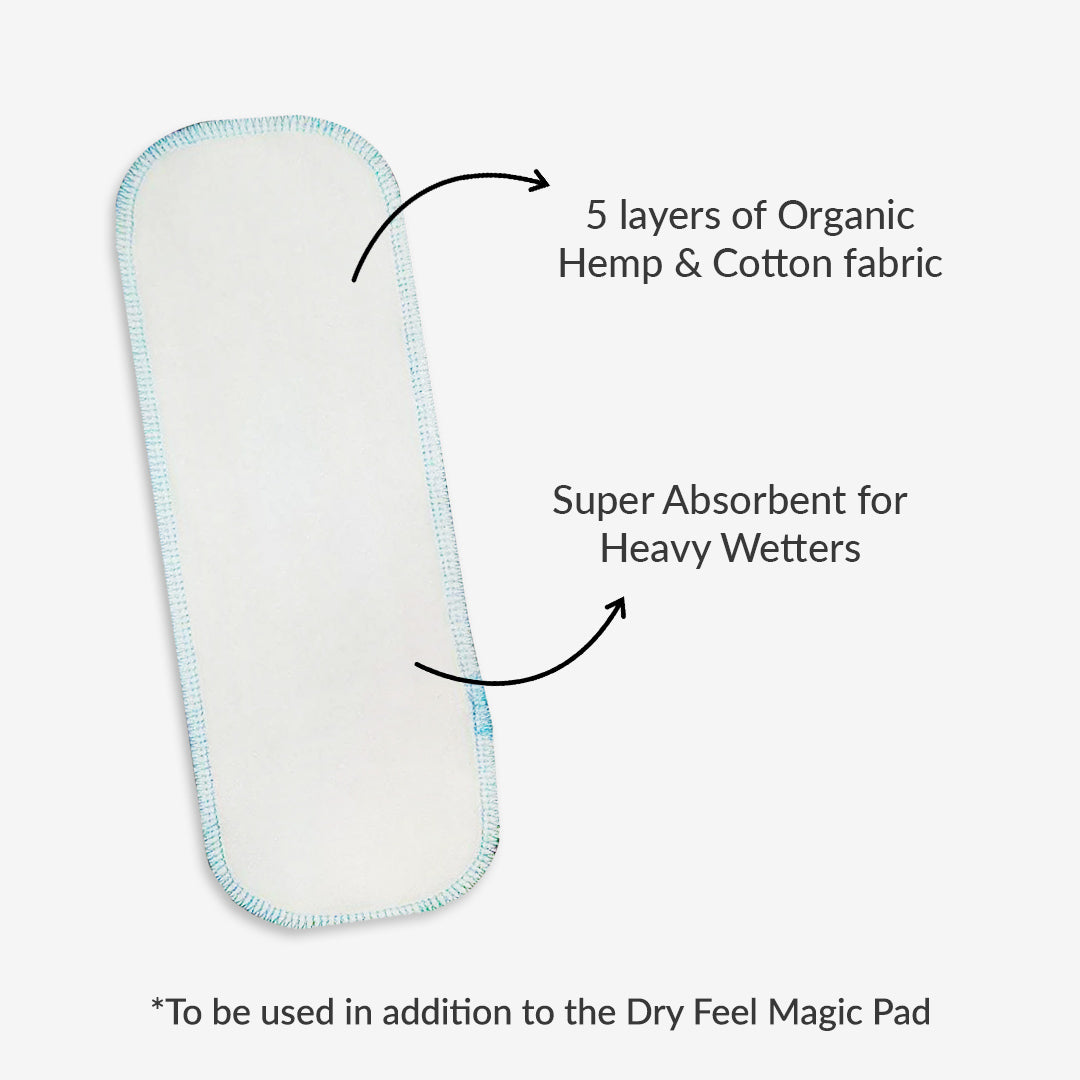 SuperBottoms Very Heavy Wetter Booster Pad now comes pre-prepped for immediate use and is made out of 5-layer organic hemp and cotton fabric which is a super absorbent fabric.