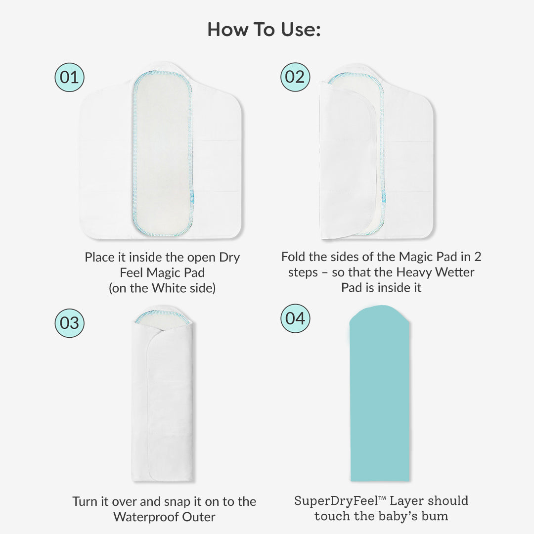 When to use: If your SuperBottoms UNO with Dry Feel Pad and Booster Pad gets full in less than 8 hours during the night, then your baby is a very heavy wetter and we recommend using this pad.
