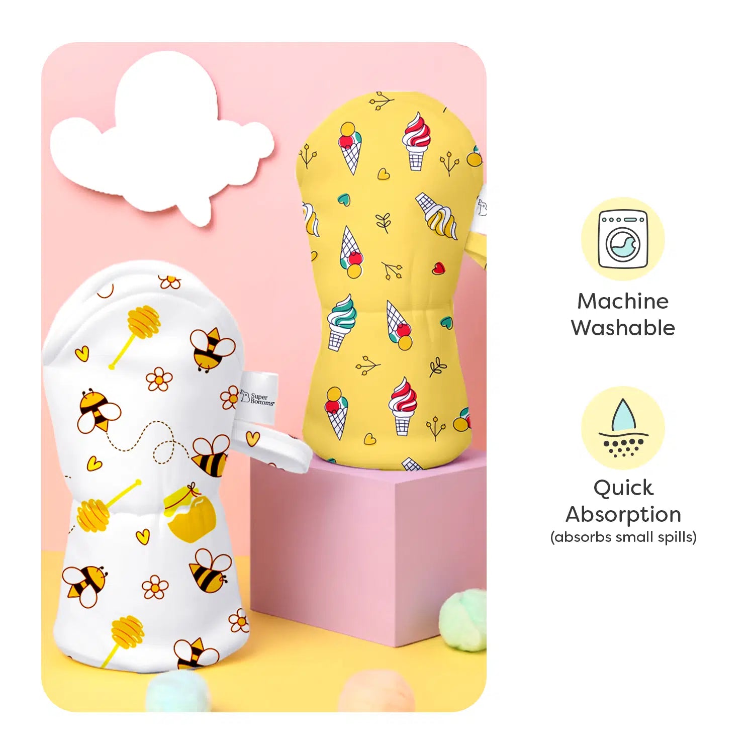 They are crafted to fit standard 250ml feeding bottles with an elasticated neck for a snug fit.