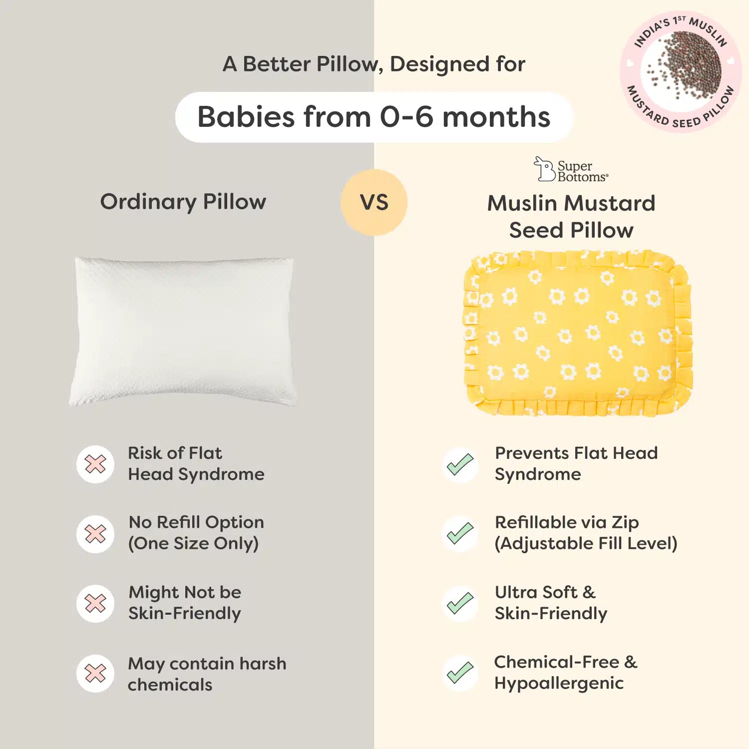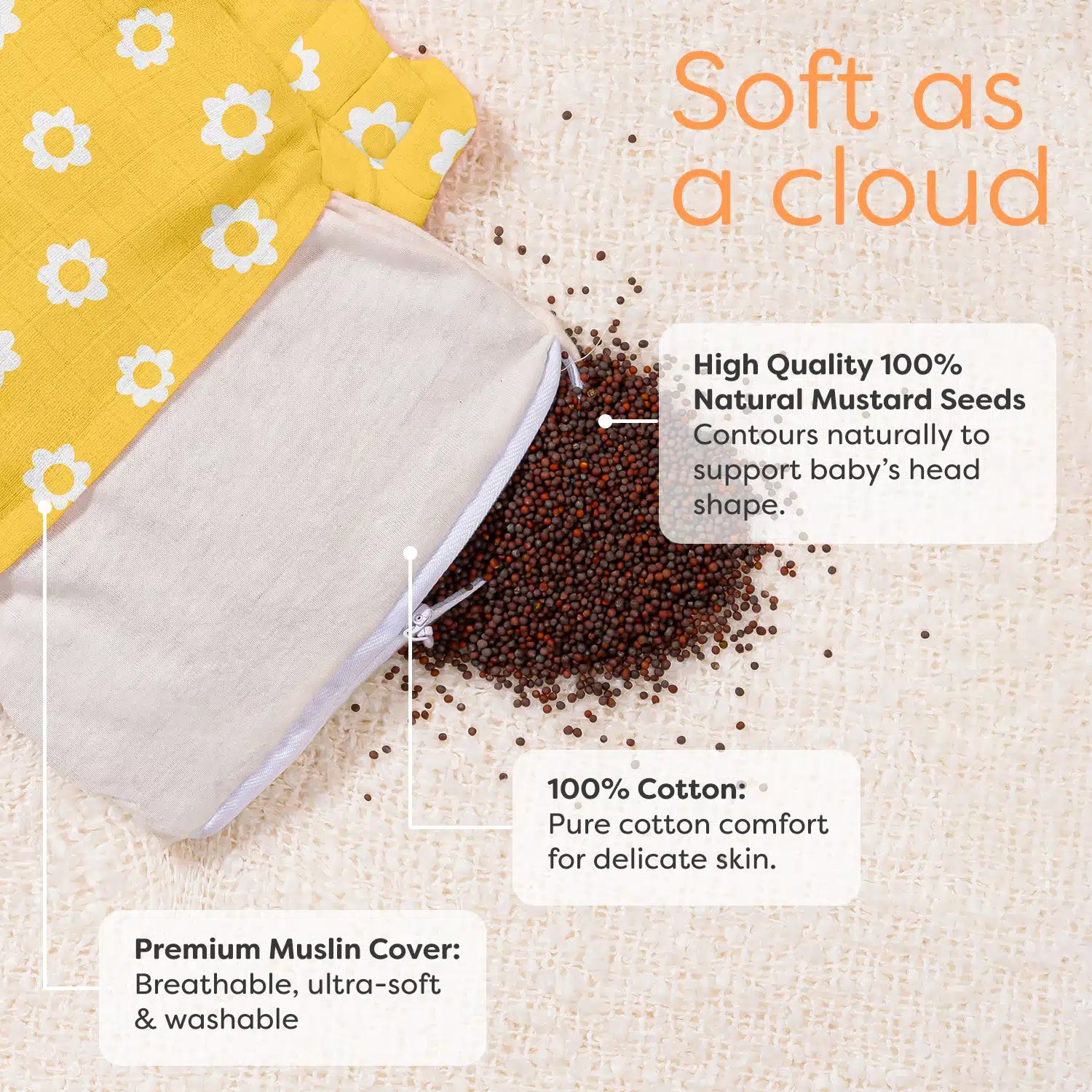 Say hello to India’s first muslin cover mustard seed pillow for babies – now with an easy-to-use zip closure! Designed for newborns aged 0 to 6 months, this pillow is filled with natural mustard seeds (rai) known to support your baby’s delicate head and promote natural shaping.