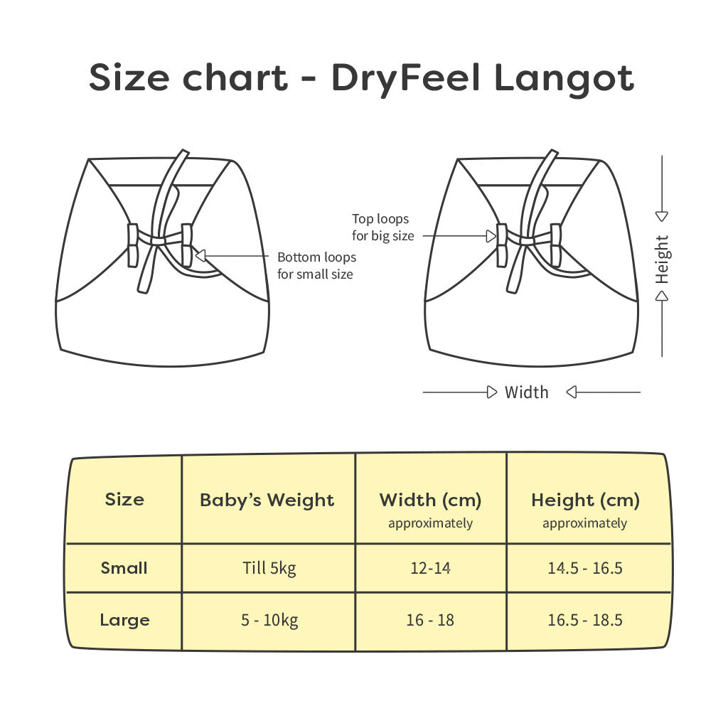 The DryFeel Langot has 3 layers of cotton padding with Super DryFeel Layer on the inside that helps to hold up to 1 pee. The gentle elastics at the back and thighs will give your baby a comfortable fit.