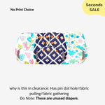 Do note: This is unused diaper and the fabric pulling/gathering is due to variation in stitching.
