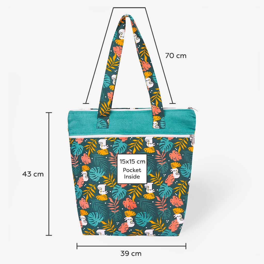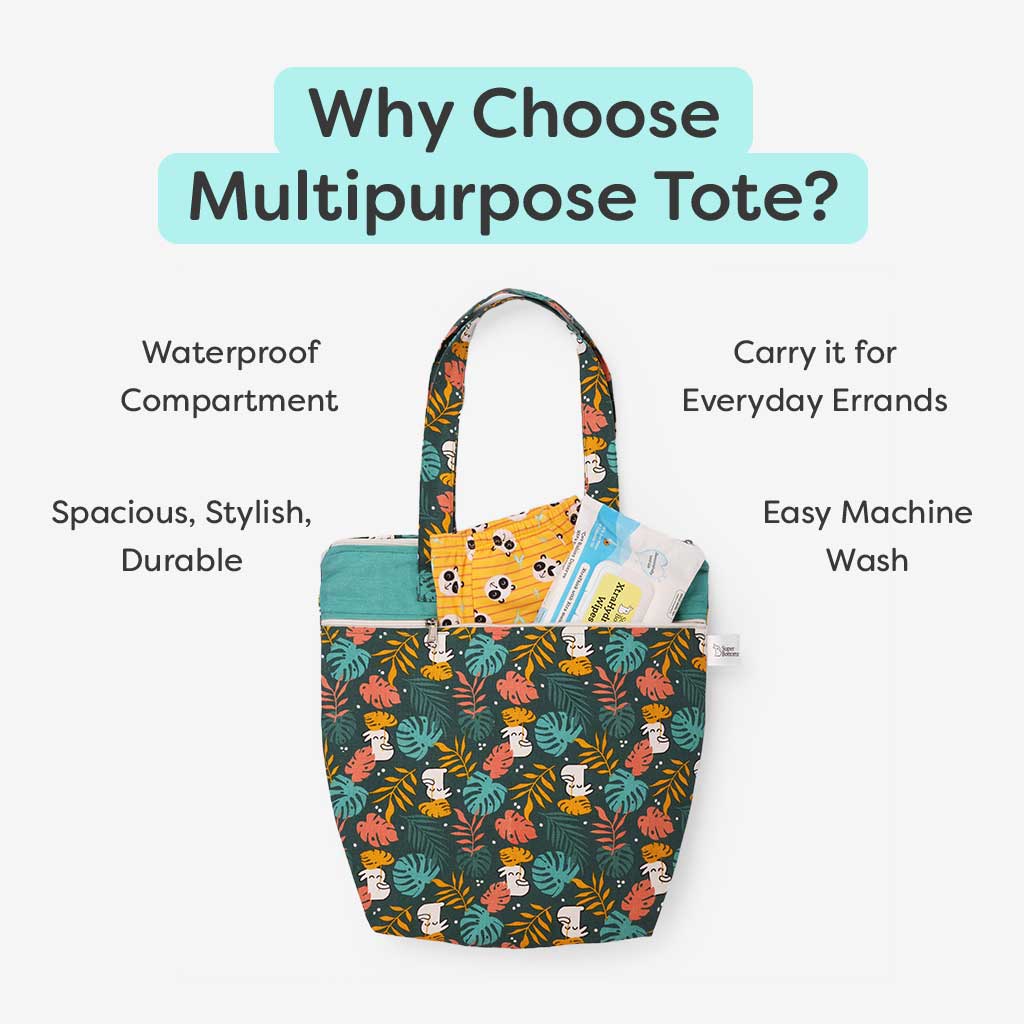 Fret Not! The Multipurpose Tote is made with fade-resistant, non-toxic dyes, ensuring that its stylish prints remain vibrant and appealing even after multiple washes.