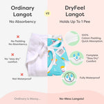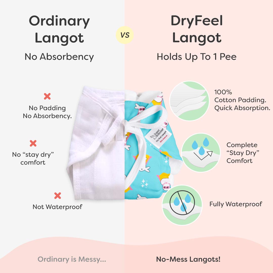 The DryFeel Langot™ is made with layers of soft, breathable cotton, unlike regular nappies that use sponge filling, which can get mouldy. It’s great for mess-free, diaper-free time, keeping your baby comfortable and clean. Plus, the double loops give you two sizes in one!