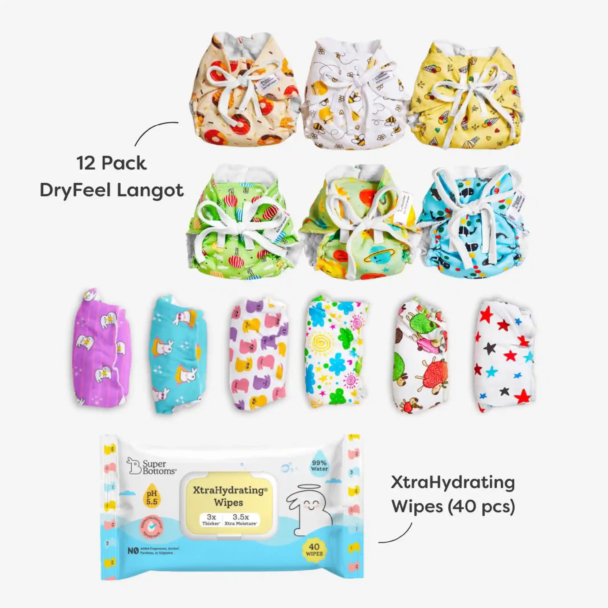 12 Pack DryFeel Langot + FREE Wipes - 40 Pack - SuperBottoms