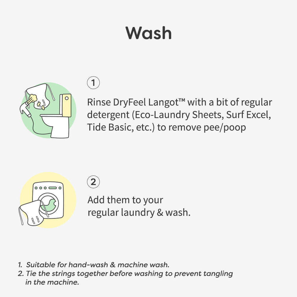Easy-peasy! After rinsing the pee/poop, First Love DryFeel Langot™ can be washed with regular laundry.