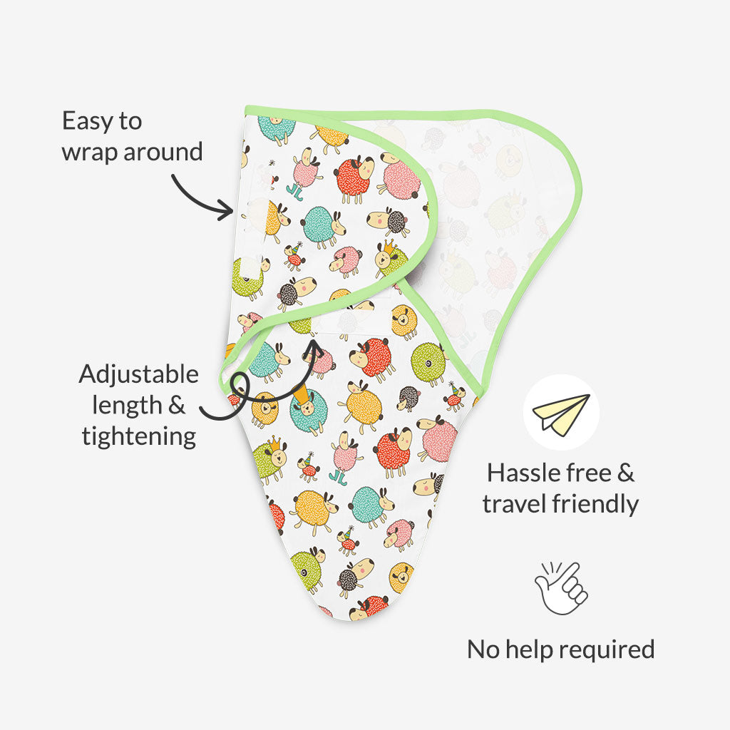 SuperBottoms Dry Feel Swaddle Wrap can ideally be used for a newborn baby from 0 to 3 months.