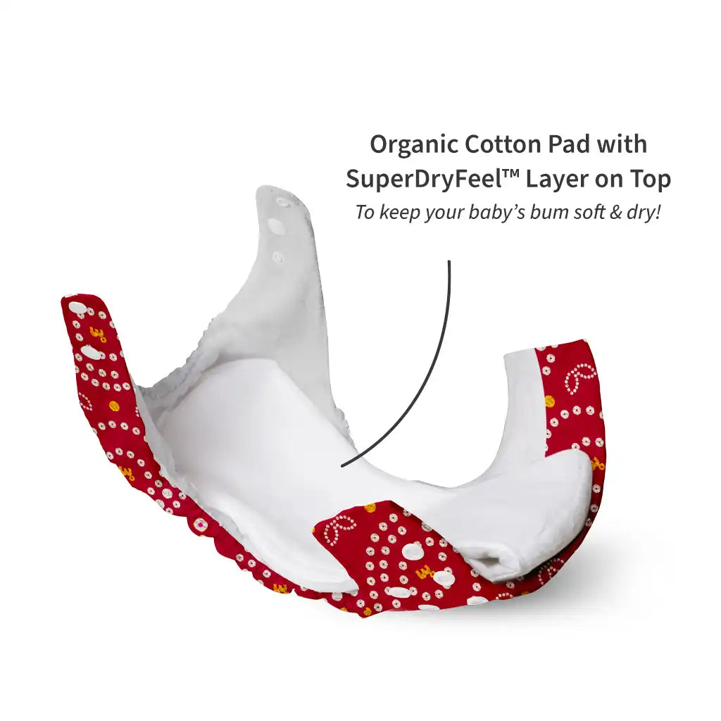-Rest all remains the same- the goodness of organic cotton inserts, stay dry and waterproofing remains intact!