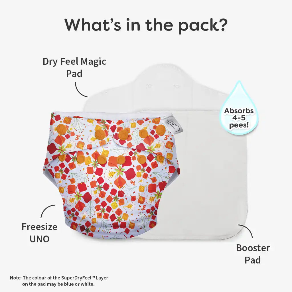 Freesize UNO Cloth Diapers (Gulmohar) by SuperBottoms
