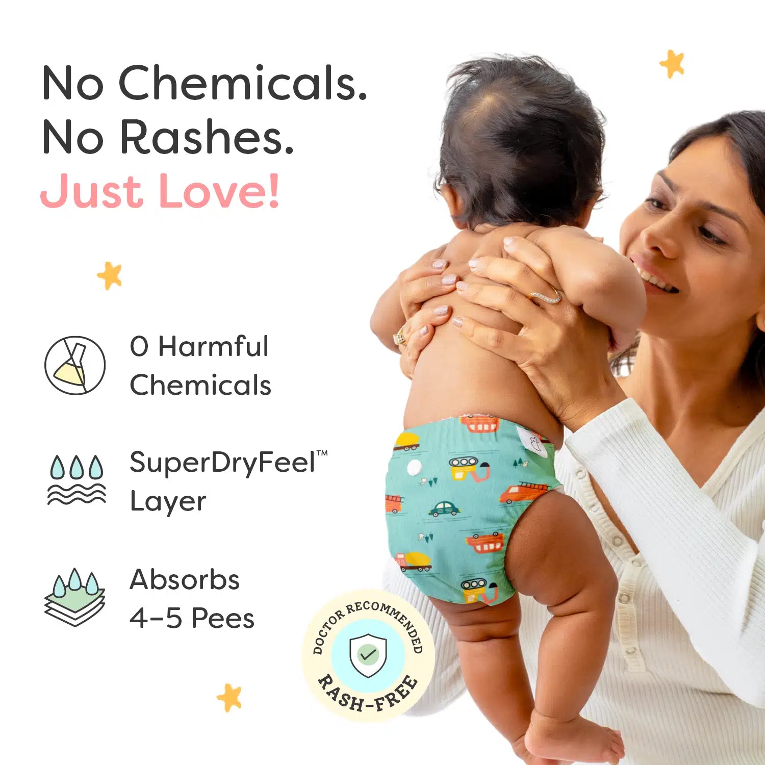 - Freesize UNO SuperSoft Cloth Diaper (with Velcro) is free of harmful chemicals such as Pthalates, Lead unlike some disposable diapers