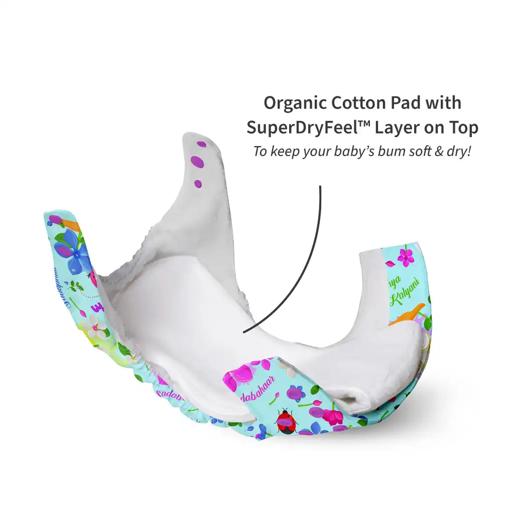 -Rest all remains the same- the goodness of organic cotton inserts, stay dry and waterproofing remains intact!