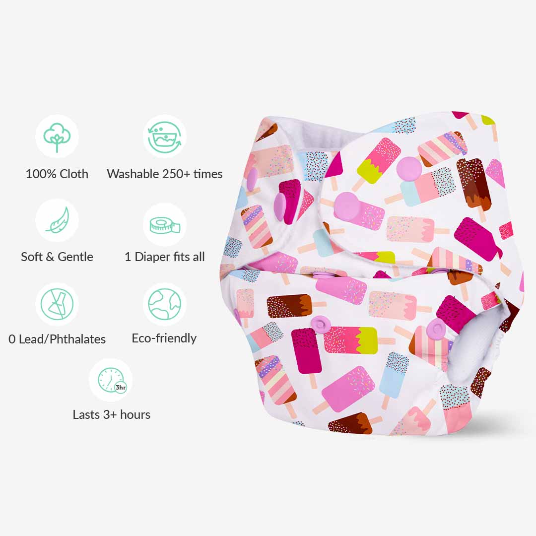 Icecream - BASIC Cloth Diaper, New & Improved with EasySnap & Quick Dry UltraThin Pad