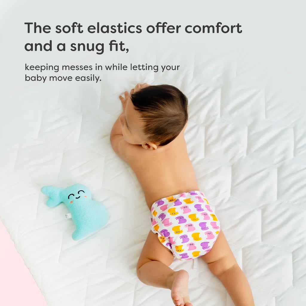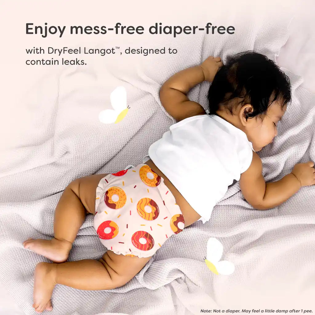 While the First Love DryFeel Langot™ is great for daytime use, it's not ideal for naps or nighttime. It's not a diaper, so it may not stay dry if your baby pees multiple times while sleeping. For longer sleep stretches, we recommend trying our waterproof UNO Cloth Diaper, which is designed to handle multiple pees and keep your baby comfortable for longer.