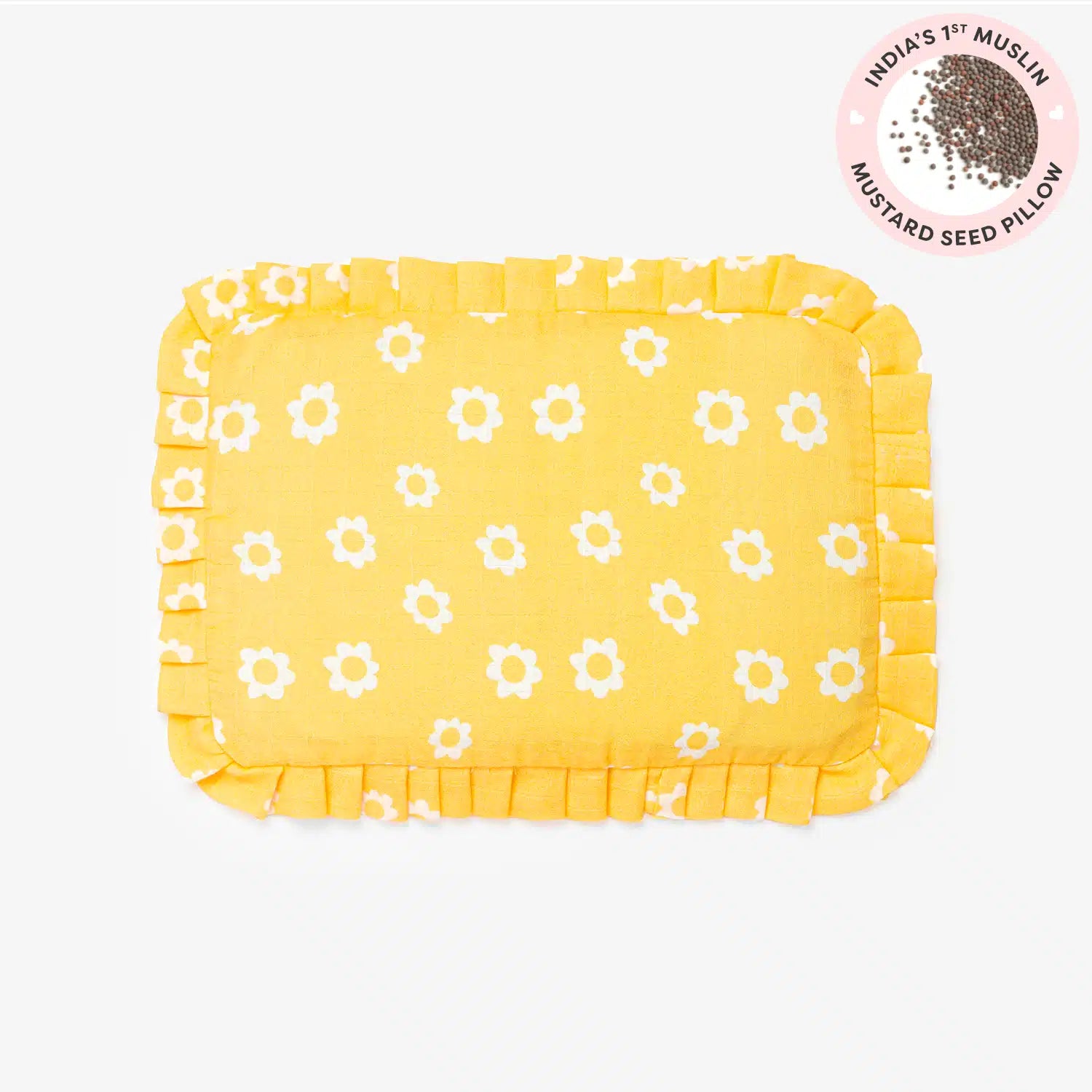 A baby pillow mustard seeds filled is a small-sized pillow for newborn babies. It is filled with natural mustard seeds and sealed in a cloth pillow cover to keep under a newborn’s head for support.