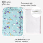 A mustard seed pillow provides the ideal support to the baby’s head and distributes even pressure around the head, neck, & shoulders to prevent Flat-head Syndrome in babies. Mustard is also believed to give warmth to the baby and helps regulate blood circulation, reduce ear infections, calm colic, and protect the baby from cold.