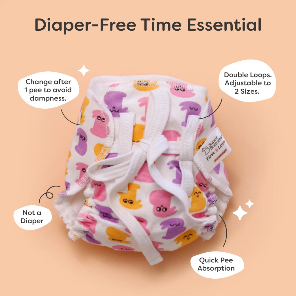 The DryFeel Langot™ is perfect for mess-free, diaper-free time with your newborn. Made from super soft, 100% cotton, it handles pee and poop leaks without creating a mess on the outside. It's breathable, gentle on delicate skin, and ideal for babies from 0 to 9 months. Please note, it’s not a diaper and should be changed after one pee.