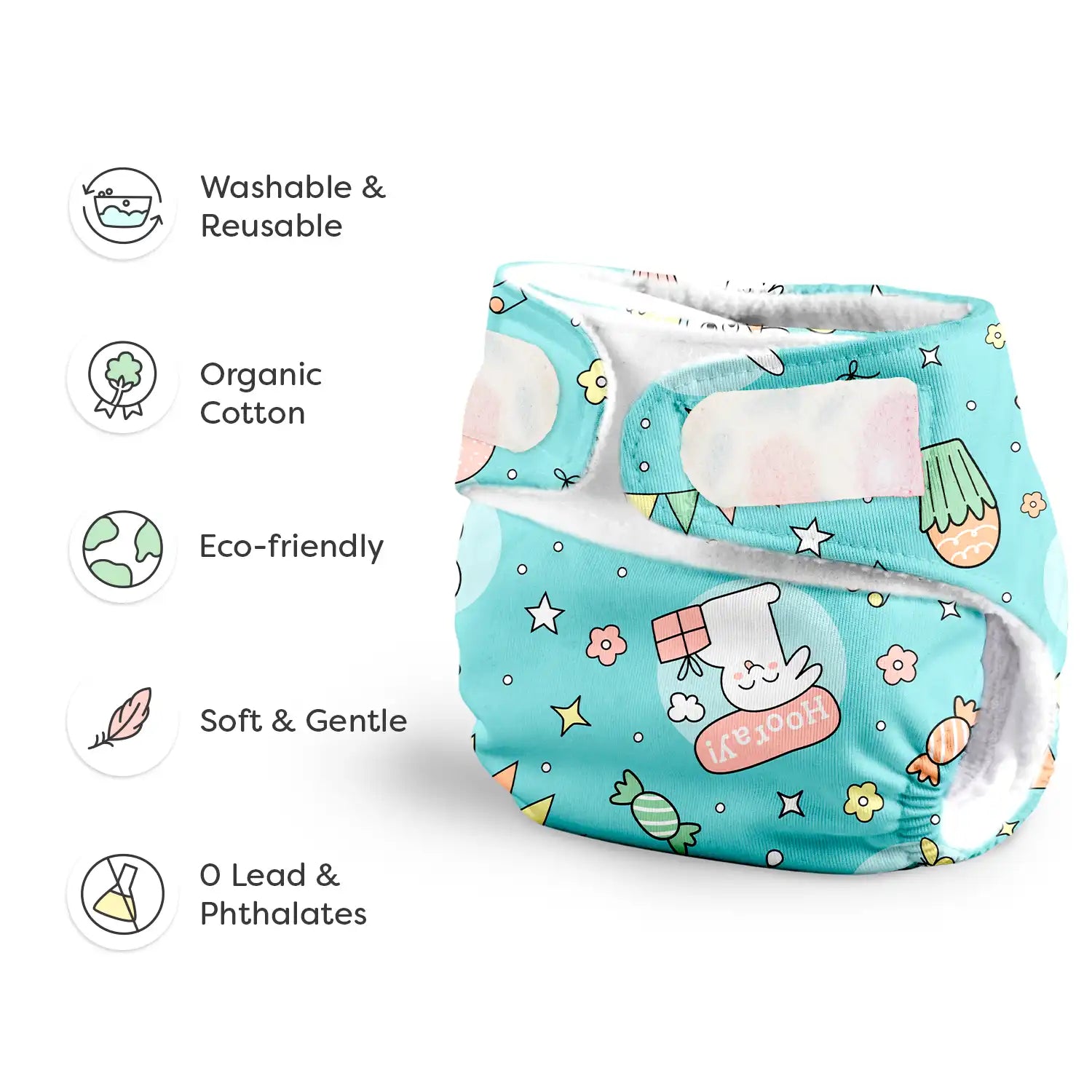 - SuperBottoms UNO is free of harmful chemicals such as Phthalates, Lead unlike some disposable diapers