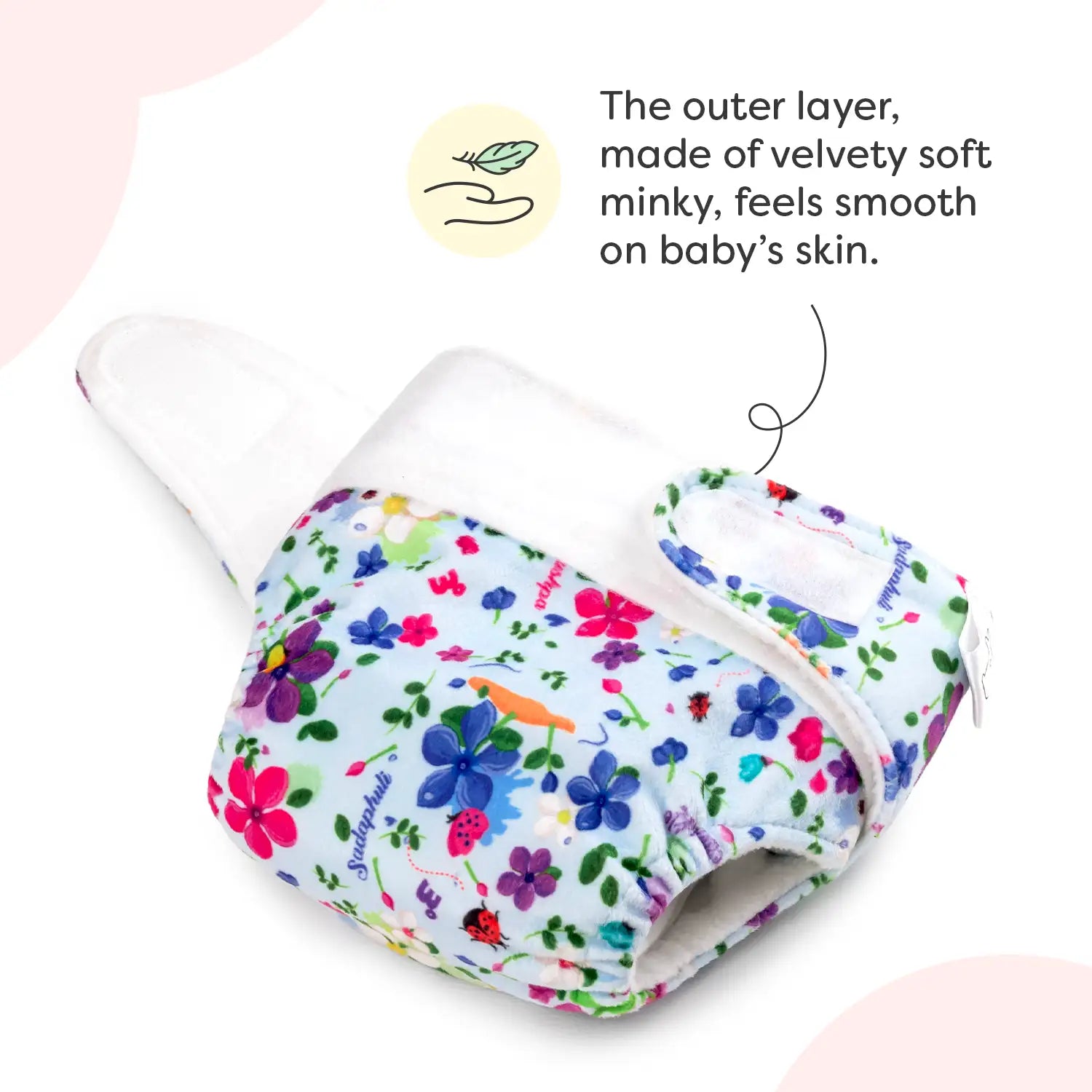 SuperBottoms Newborn UNO is a reusable and washable cloth diaper that is made of all cloth & no harmful chemicals. It is the softest and gentlest diaper for a newborn baby. It provides the convenience of a disposable diaper with the goodness of cloth.