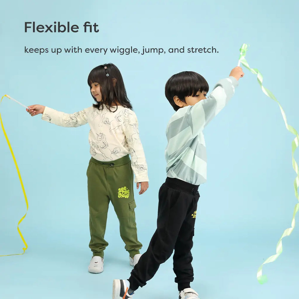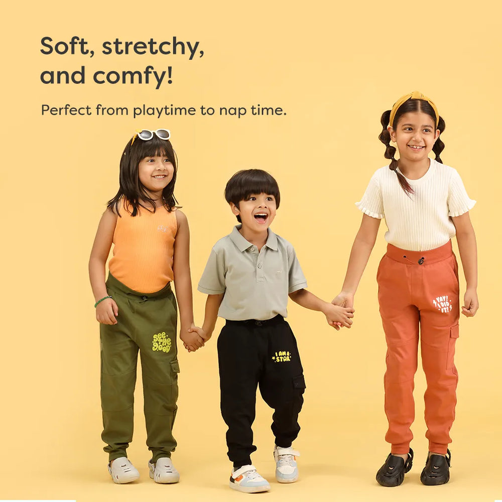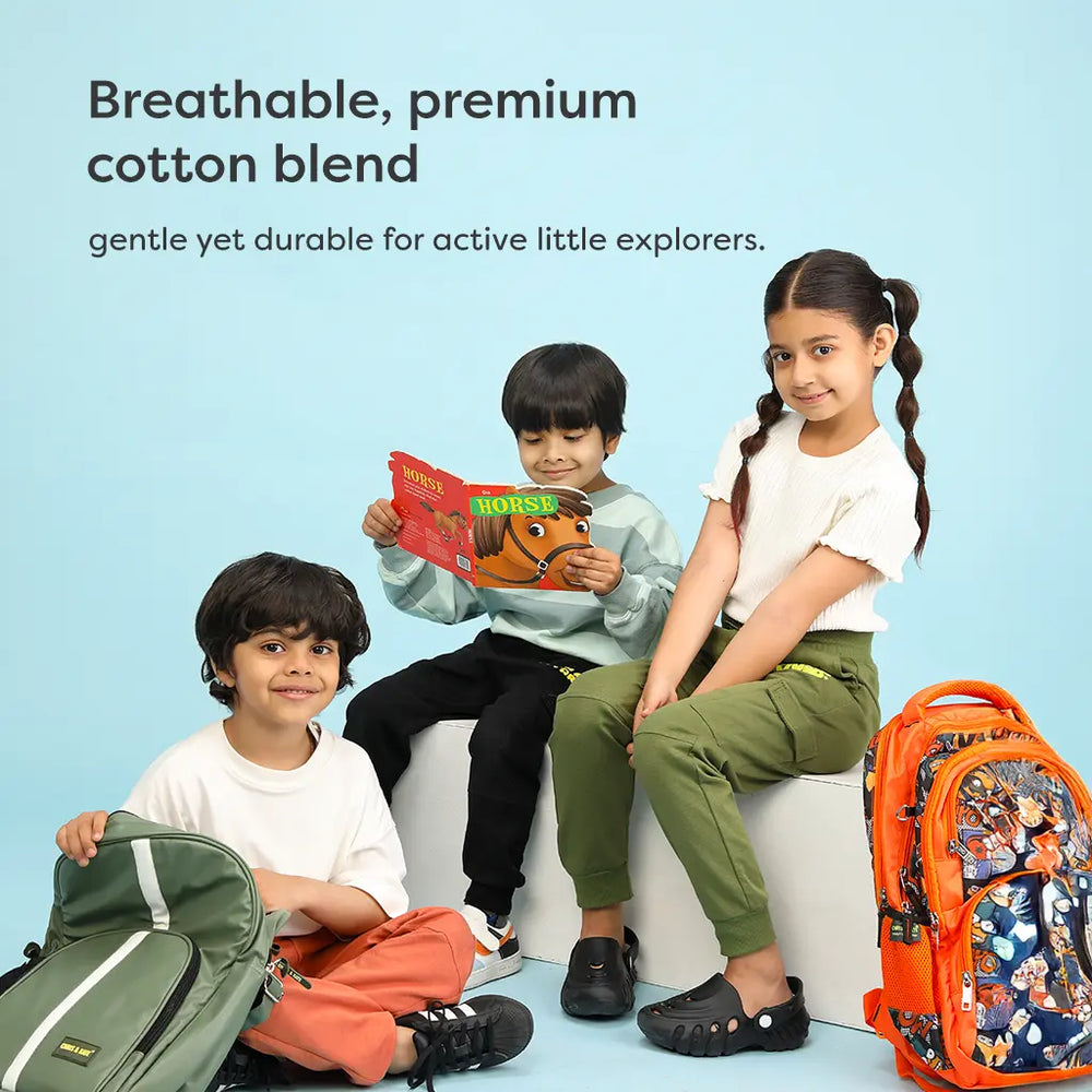 Want to give your child comfort and make them adventure-ready? SuperBottoms Unisex Joggers are here for you. Made with a soft, durable cotton blend, they're perfect for all-day play. Features include an adjustable waistband, ribbed cuffs to prevent ride-ups, and anti-pilling fabric for lasting wear. Versatile earthy colours suit any outfit, ideal for home, school, and outdoor fun. Sizes 4-8 years.