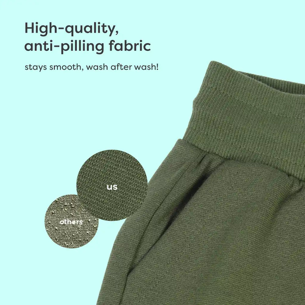 SuperBottoms joggers are designed for both comfort and durability, featuring an adjustable waistband, anti-pilling fabric, and a blend of cotton for lasting softness.