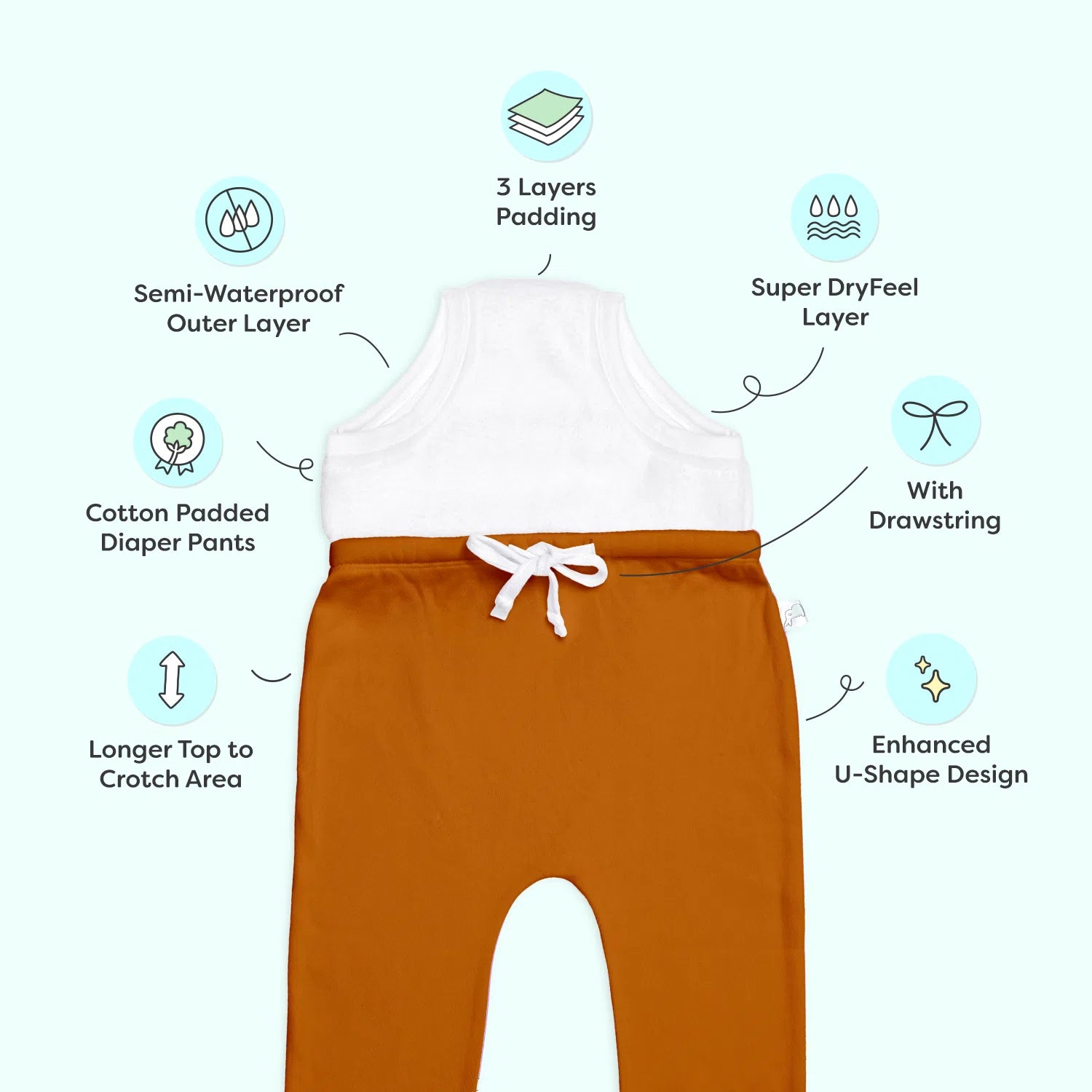 Enhanced U-shape crotch design, increased top-to-crotch length, and a relaxed overall fit for better comfort and mobility. And yes, apart from the cute prints you already love, we now have the solid unisex gender-neutral diaper pants for parents & kids who do not prefer prints.