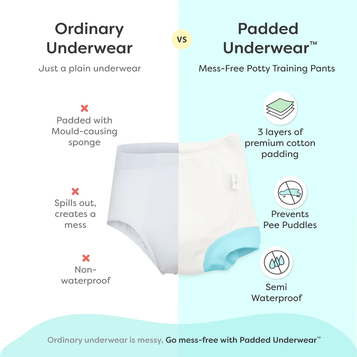 Can these be used for potty training? Yes! Padded Underwear™ are parents’ most trusted potty training pants. Babies eventually learn to understand the concept of wetness, which plays a significant role in potty training. The pull-up style makes it easier for kids to wear & remove. So now, potty train your kiddo worrying about any mess.