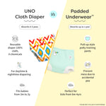 What is the difference between UNO Cloth Diaper and Padded Underwear™ ?UNO Cloth Diapers and Padded Underwear differ in their functionality and usage.