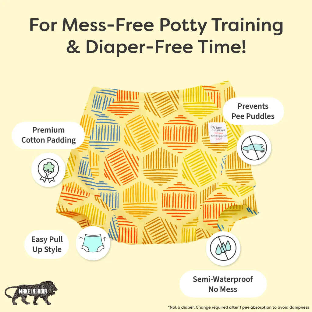Can these be used for potty training? Yes! Padded Underwear™ are parents’ most trusted potty training pants. Babies eventually learn to understand the concept of wetness, which plays a significant role in potty training. The pull-up style makes it easier for kids to wear & remove. So now, potty train your kiddo worrying about any mess.