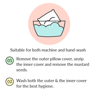 The outer cotton pillow cover and even the mustard seeds are completely removable. This makes it very hygienic, easy to wash the pillow covers, and saves the pillow from any fungal reactions.