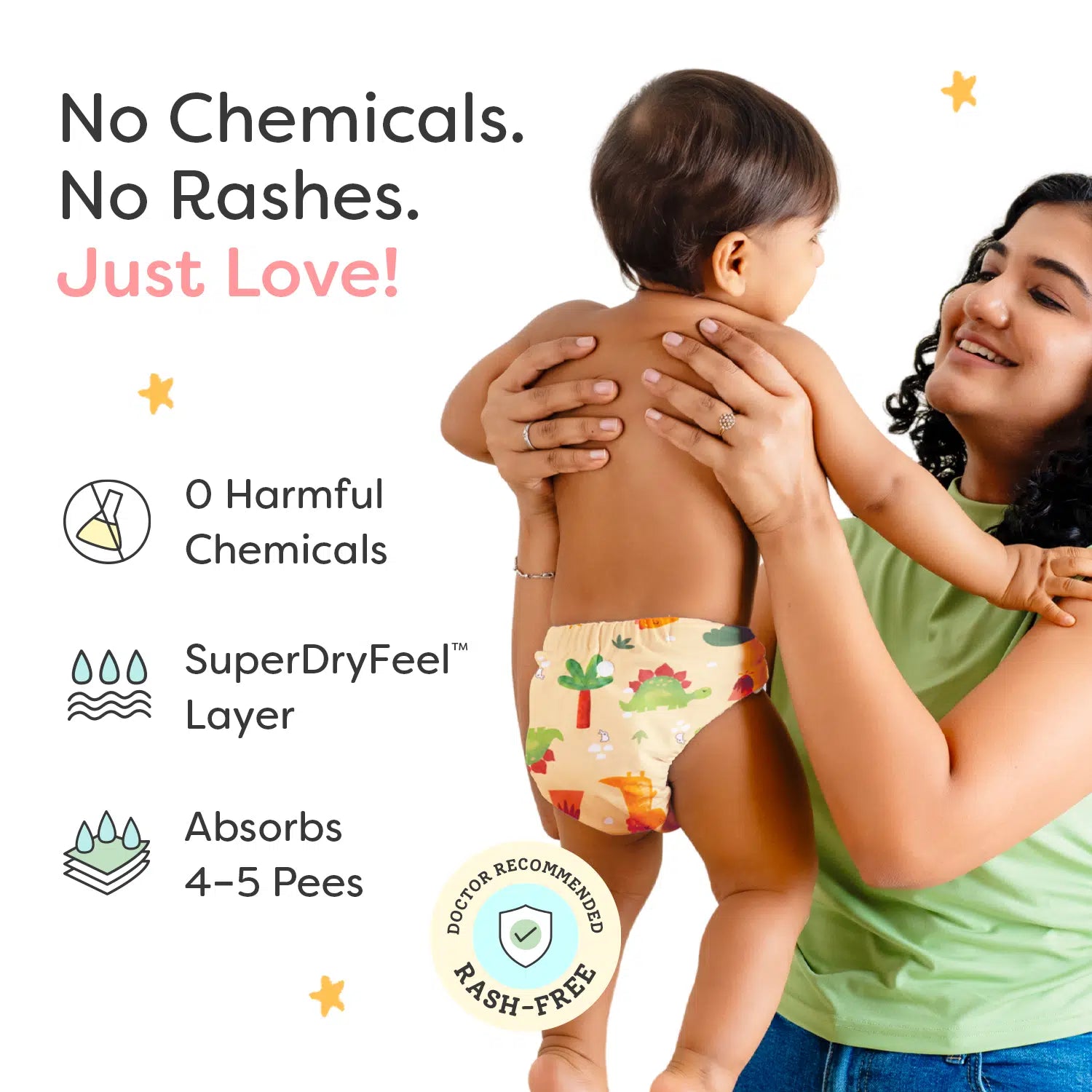 - Freesize UNO SuperSoft Cloth Diaper (with Velcro) is free of harmful chemicals such as Pthalates, Lead unlike some disposable diapers