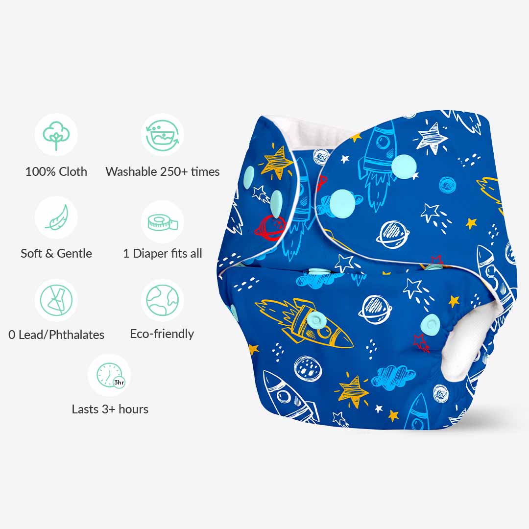 BASIC Cloth Diaper (Space Rocket) with Dry Pad | SuperBottoms