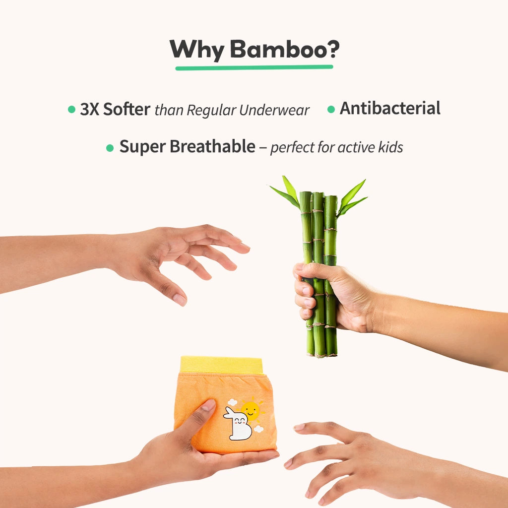 This kids’ underwear is 3X softer than regular, made from 95% Bamboo & 5% Elastane, tons of love, and a sprinkle of magic. It’s super stretchy, breathable, and comfortable.