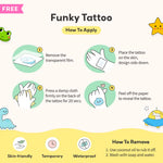 These tattoos are temporary, skin-friendly and waterproof, ensuring safe and long-lasting play. Simply peel the transparent film, apply the tattoo design-side down on the skin, press a damp cloth for 20 seconds, and reveal the fun!