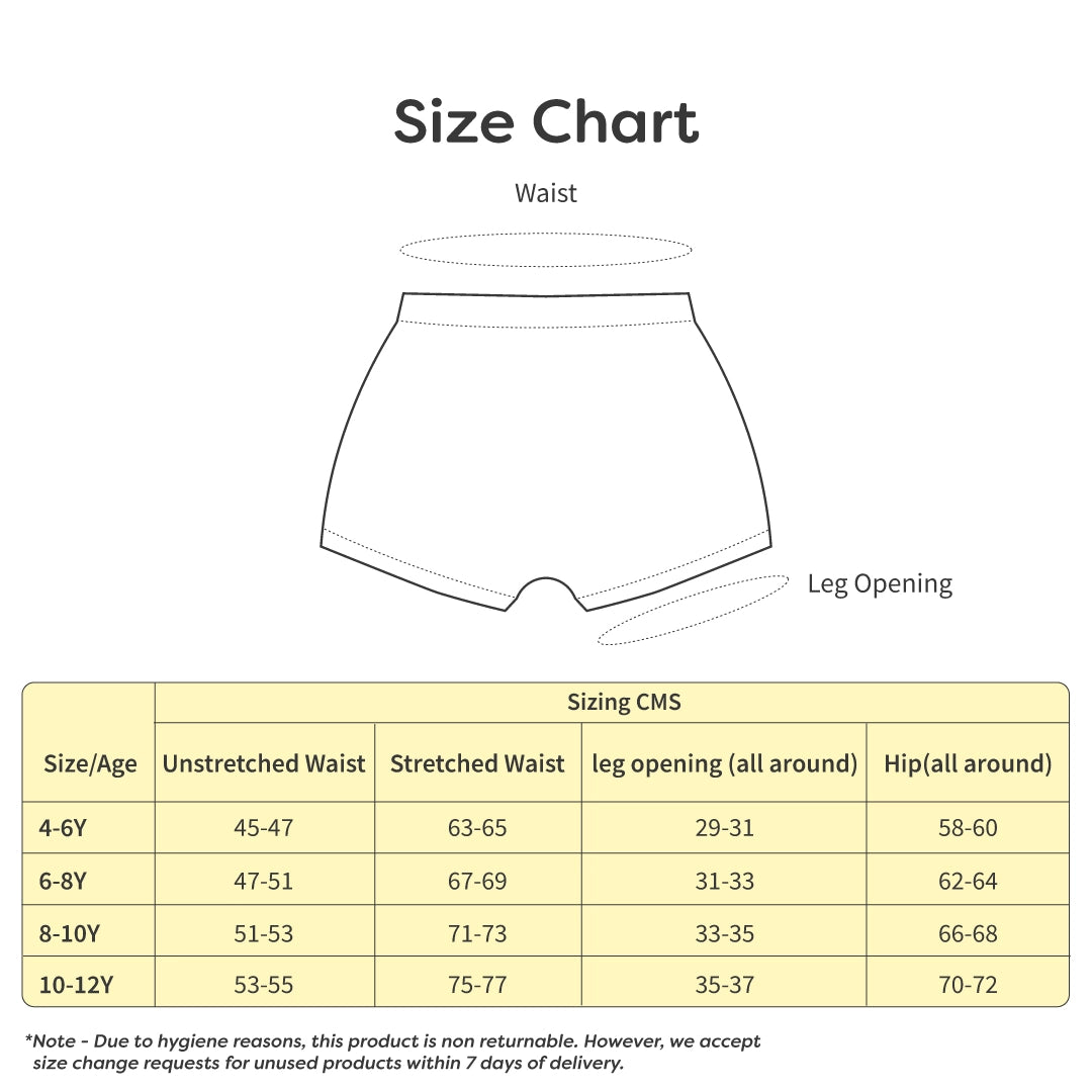 SuperSoft Underwear is crafted with 95% Bamboo and 5% Elastane, making them exceptionally soft and comfortable for kids’ everyday wear.