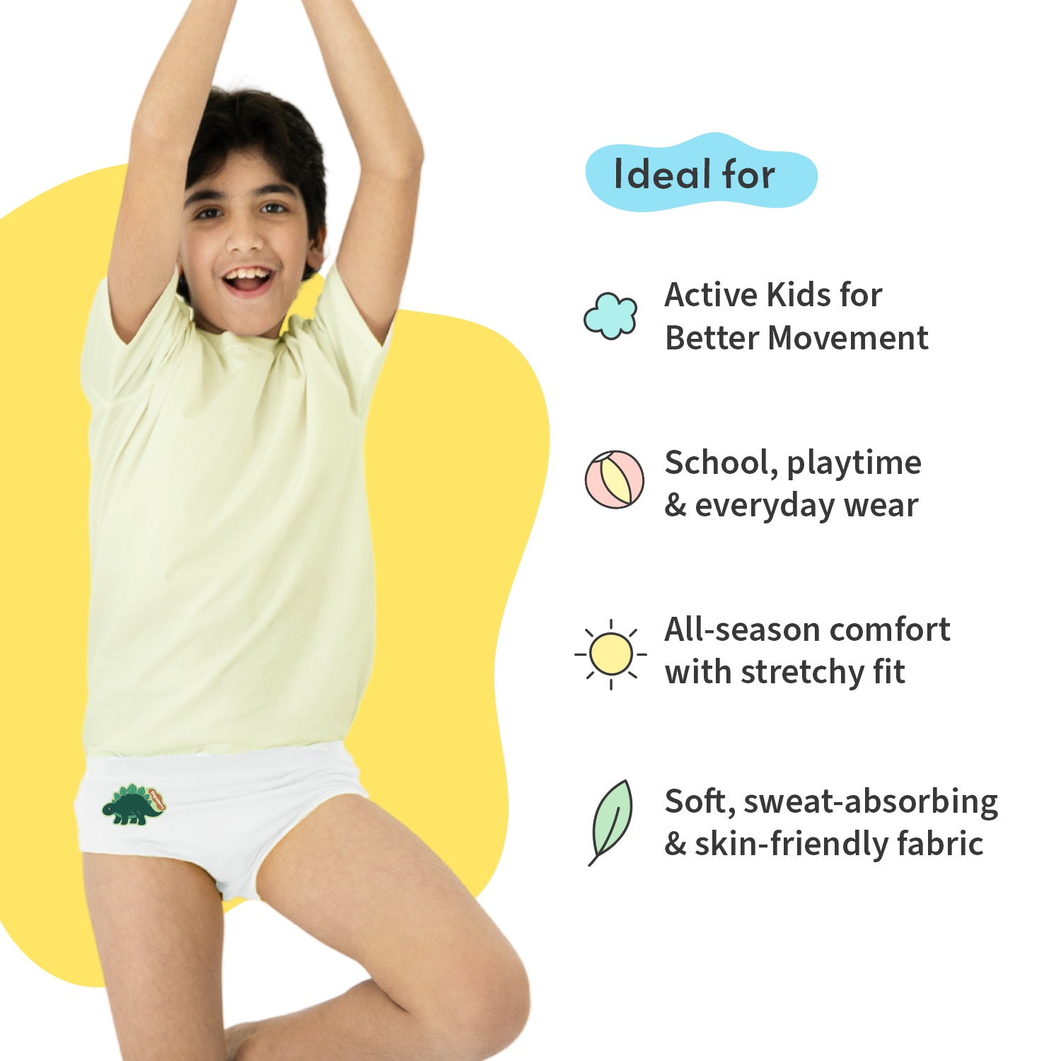 SuperSoft Underwear is crafted with 95% Bamboo and 5% Elastane, making them exceptionally soft and comfortable for kids’ everyday wear.