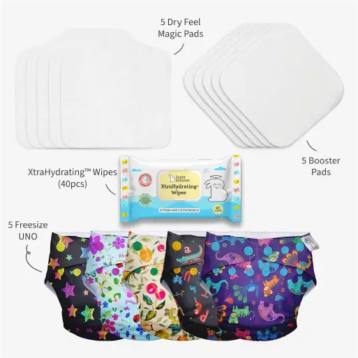 - SuperBottoms UNO is free of harmful chemicals such as Pthalates, Lead unlike some disposable diapers